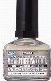 C テクスチャーペイントは色が鮮やかすぎるので、Mrウエザリングカラーを薄くランダムに塗って、表面の色を落ち着かせました。