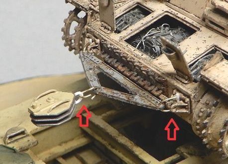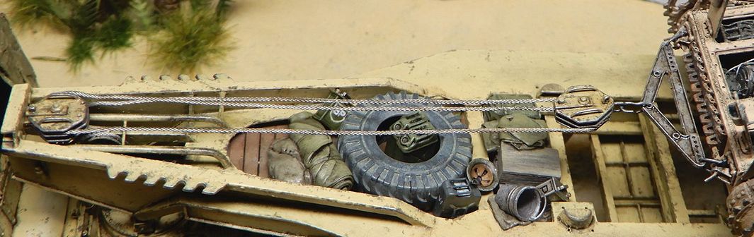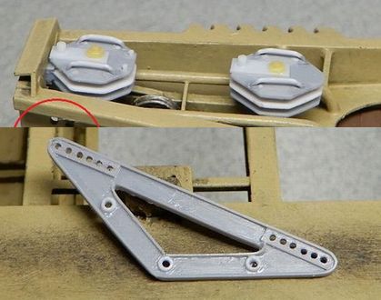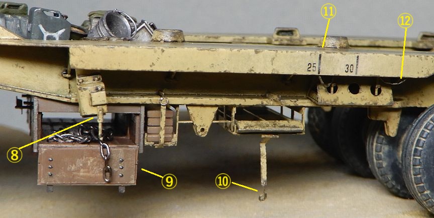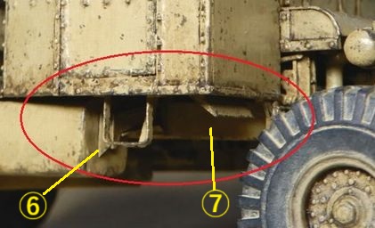 地面には、後部の傾斜路を格納するときに使う金具をプラ棒で自作して追加しました。