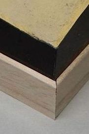 | 4 枠の製作 @ 0.5ミリ厚の塩ビ板を形状に合わせてカットし、4面に木工用ボンドで貼り付けました。