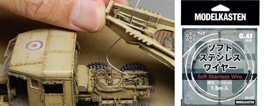 ワイヤーは上の5で紹介したモデルカステンのソフトステンレスワイヤーです。(ちょっとたるんでいるのは見逃してね。)