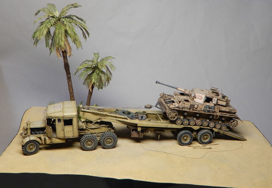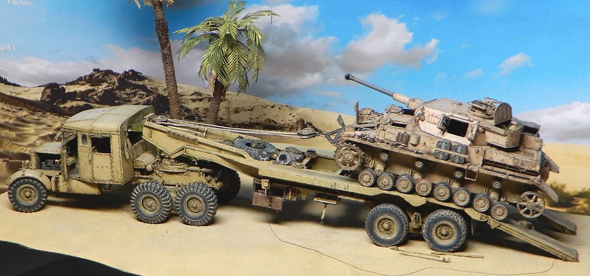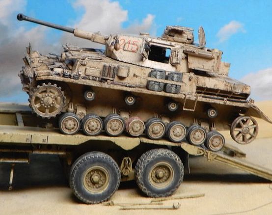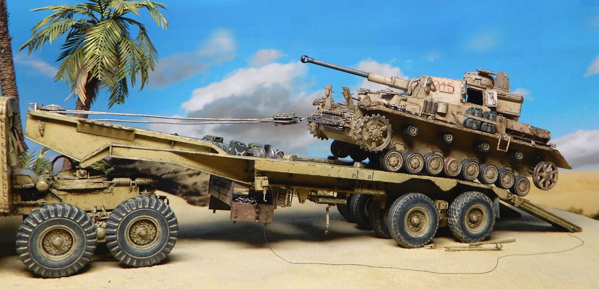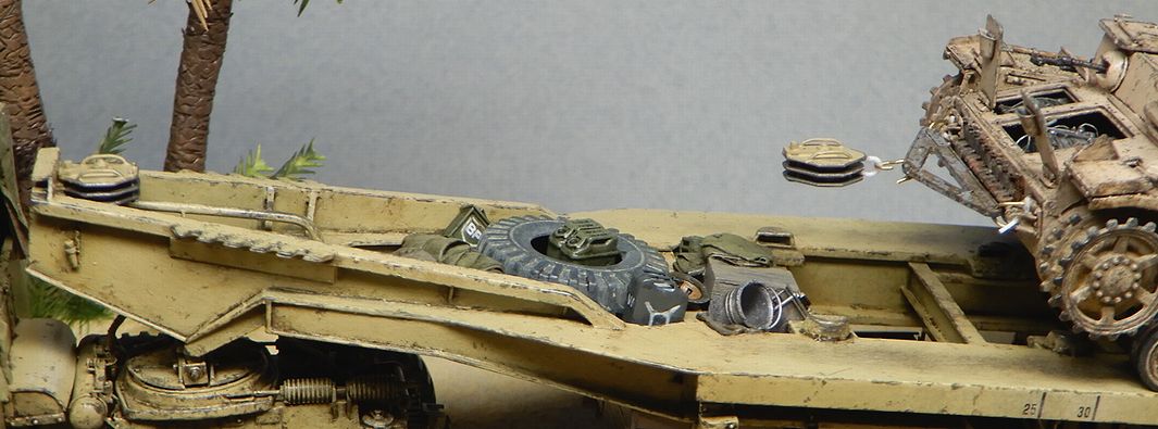 | 9 4号の固定@ 脇役である4号F2型をスキャンメルのトレーラー上に固定しました。