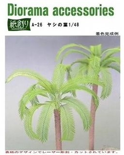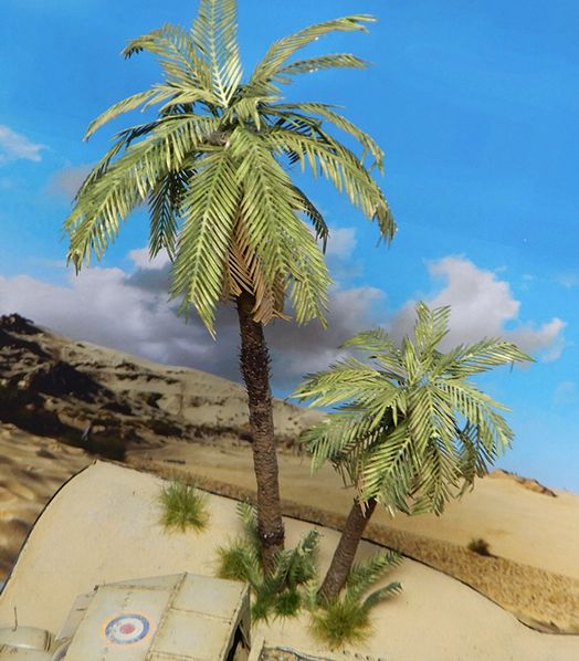 ヤシはココナツヤシとナツメヤシで製品が違います。また、ナツメヤシでは72スケールの葉がないため48を使いましたが、そんなに違和感はありませんね。