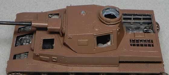 | 8 仕上げ作業@ 墨入れ (最近は仕上げ作業は簡単に書いてしまっていたので、ステップごとに少し丁寧に説明します。) いつものように、油彩の黒と茶色の混色を極薄に溶いたもので墨入れをして、半日乾燥させたあと、溶剤をつけた筆で表面を撫でて不必要な部分は拭き取りました。 ここからの仕上げ作業によって、「ただの色を塗った模型」が大きく変貌することになります。