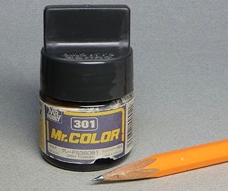 | 9 仕上げ作業A ラッカーでのチッピング チャコールグレーでハゲチョロを描きました。いつもはジャーマングレーを使いますが、今回は車体色が明るいので、描いたハゲチョロ表現がきつくならないように、少し明るめのチャコールグレーを使いました。 手や靴、他の金属が触れて塗装がはげる位置をイメージしながら、極細の面相筆の先でチョンチョンと突くように点描しました。 今回は車体が明るい色だったので、HBのエンピツで車体のエッジを撫でて輪郭を際立たせました。 |